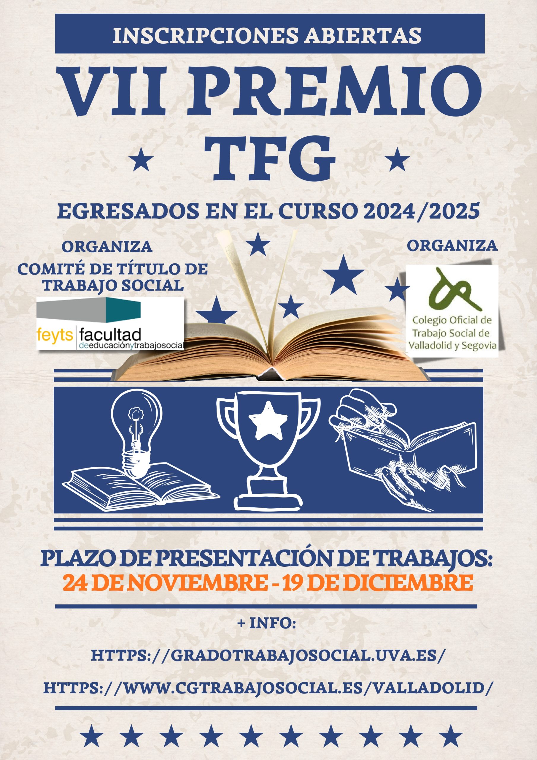 - Bases VII Edición del premio TFG de Trabajo Social, convocado por el Colegio Oficial de Trabajo Social de Valladolid y Segovia y la Facultad de Educación y Trabajo Social de la Universidad de Valladolid.